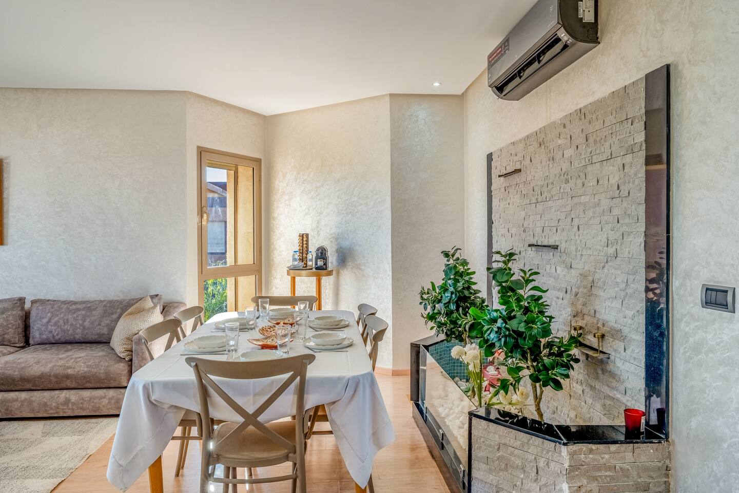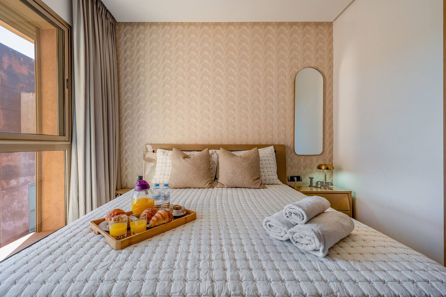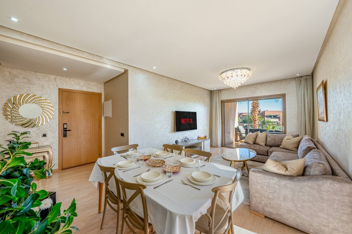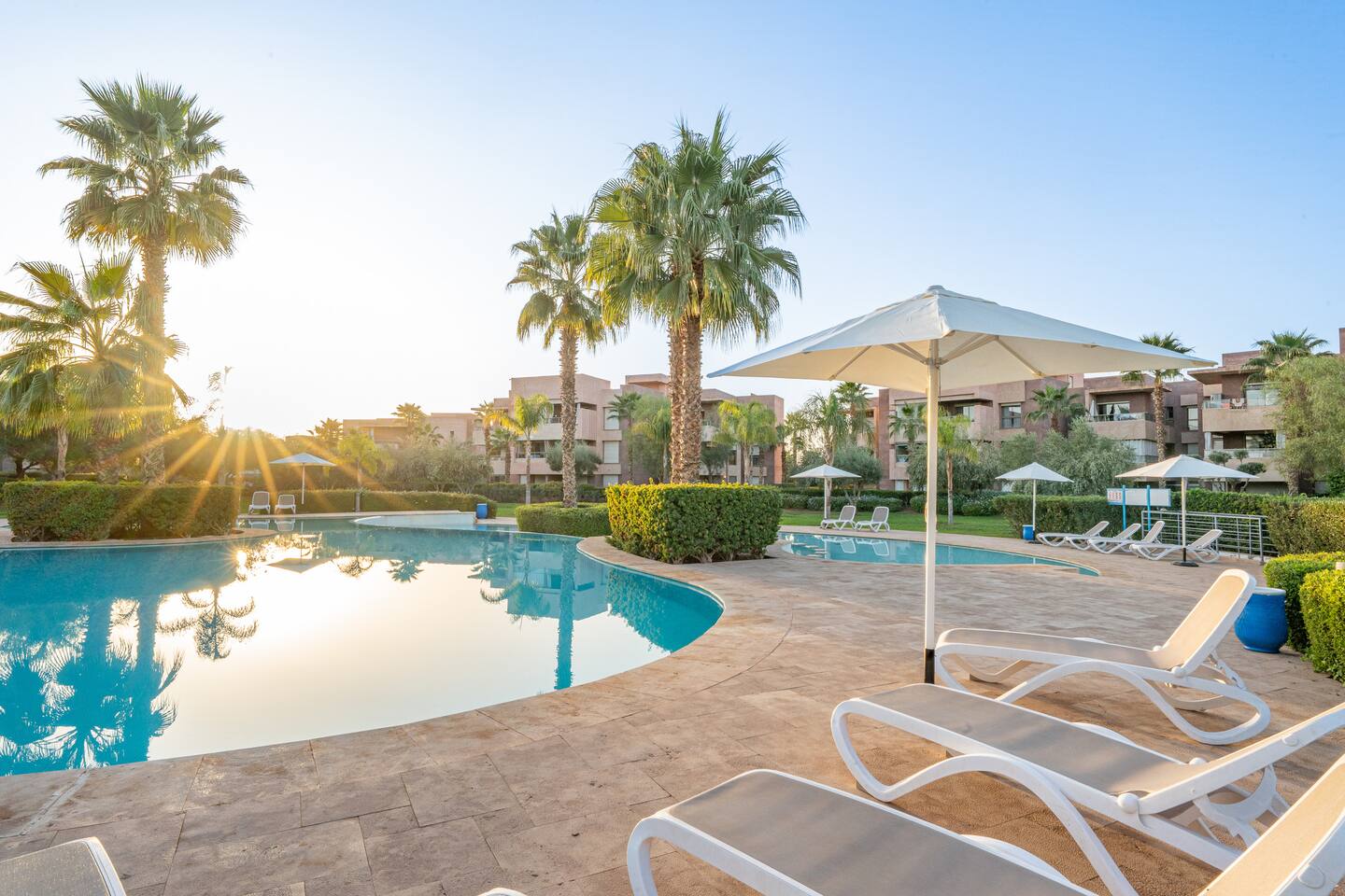 Vous bénéficierez de l'appartement dans sa totalité, entièrement équipé et aménagé pour que vous vous sentiez comme à la maison. Vous bénéficierez aussi d'un accès permanent à la piscine ainsi qu'aux espaces verts. - Conciergerie disponible 24/7, pour satisfaire tous vos besoins. - Transport aéroport-appartement (en option) - Ménage professionnel avant et pendant le séjour (en option) - Excursions et expériences (en option) - Recommandations locales et adresses utiles pour vous aider à collectionner des souvenirs inoubliables de Marrakech. - Self check-in : accéder au logement à tout moment grace au code d'entrée digital. -------------------------------------------------------------------------- You will benefit from the entire apartment, fully equipped and arranged to make you feel at home. You will also have permanent access to the pool and green spaces. - Concierge available 24/7, to satisfy all your needs. - Airport-apartment transport (optional) - Professional cleaning before and during the stay (optional) - Excursions and experiences (optional) - Local recommendations and useful addresses to help you collect unforgettable memories of Marrakech. - Self check-in: access the accommodation at any time thanks to the digital entry code.