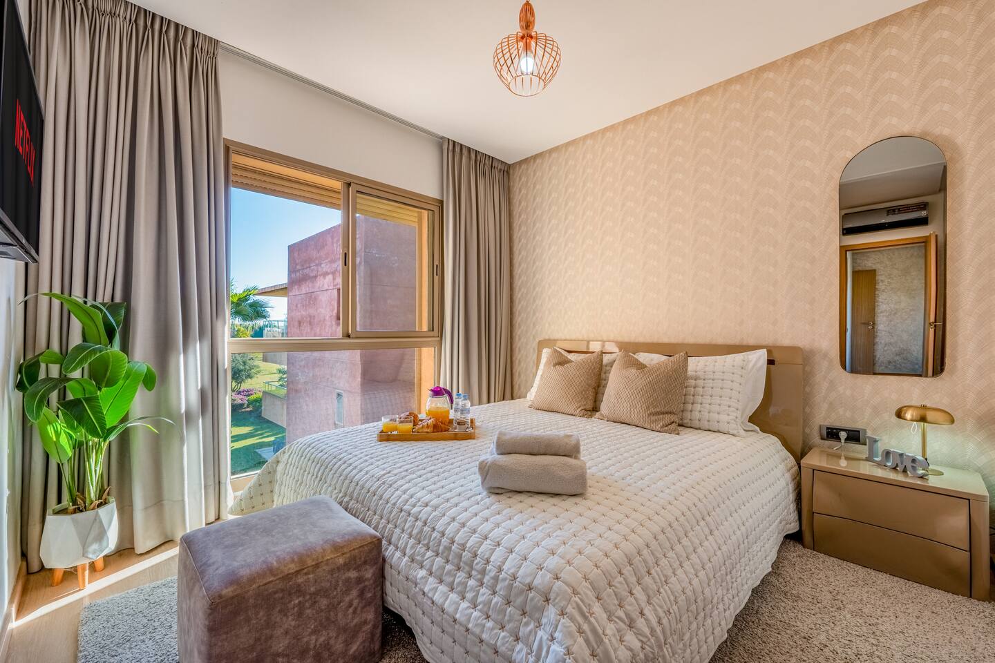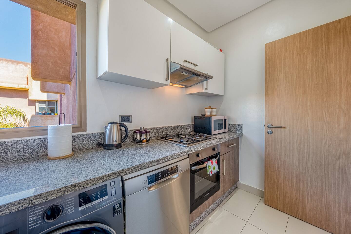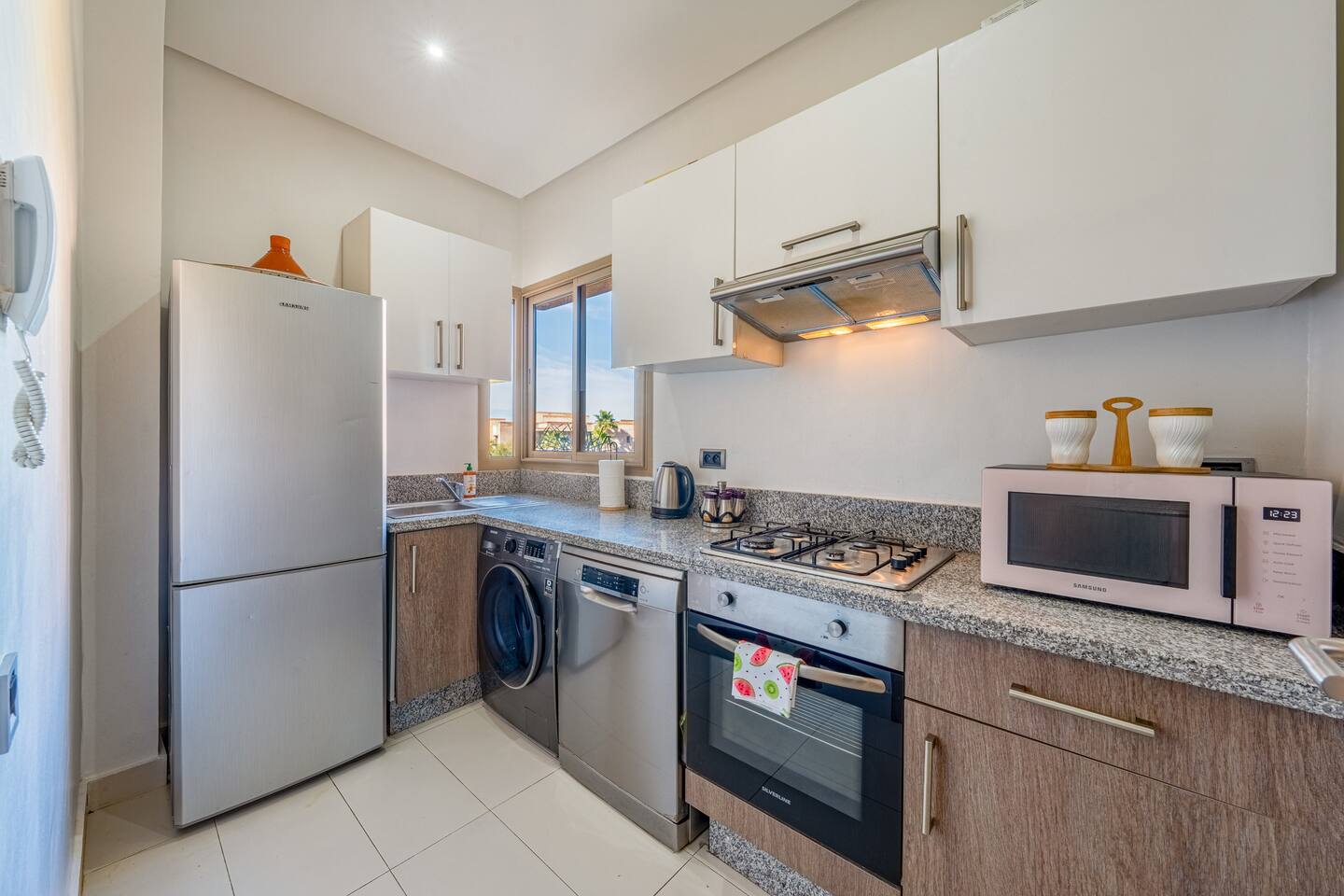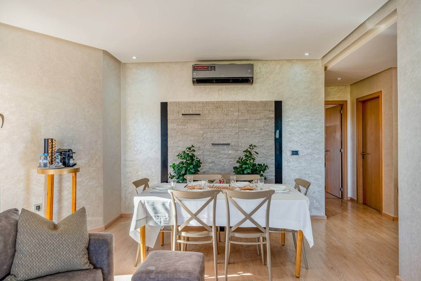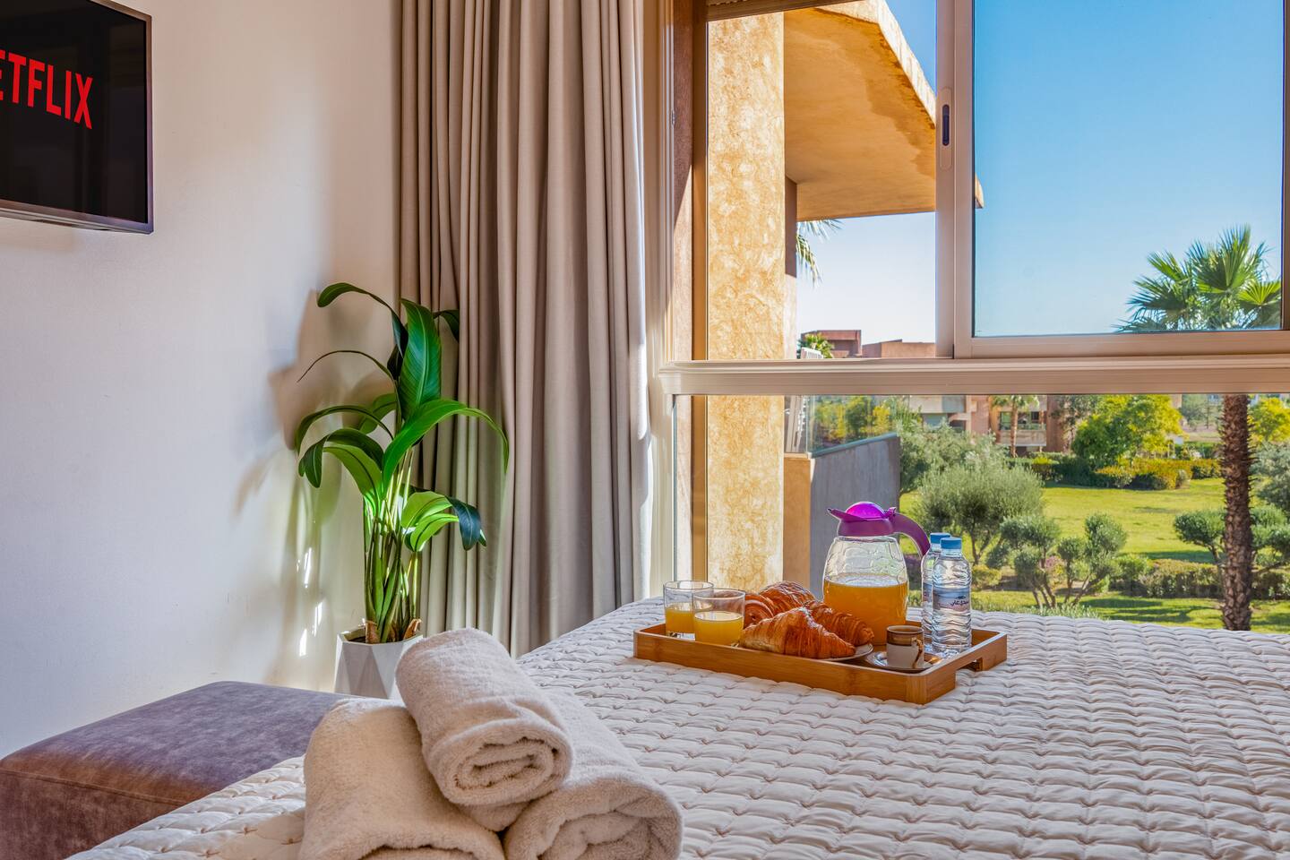 Vous bénéficierez de l'appartement dans sa totalité, entièrement équipé et aménagé pour que vous vous sentiez comme à la maison. Vous bénéficierez aussi d'un accès permanent à la piscine ainsi qu'aux espaces verts. - Conciergerie disponible 24/7, pour satisfaire tous vos besoins. - Transport aéroport-appartement (en option) - Ménage professionnel avant et pendant le séjour (en option) - Excursions et expériences (en option) - Recommandations locales et adresses utiles pour vous aider à collectionner des souvenirs inoubliables de Marrakech. - Self check-in : accéder au logement à tout moment grace au code d'entrée digital. -------------------------------------------------------------------------- You will benefit from the entire apartment, fully equipped and arranged to make you feel at home. You will also have permanent access to the pool and green spaces. - Concierge available 24/7, to satisfy all your needs. - Airport-apartment transport (optional) - Professional cleaning before and during the stay (optional) - Excursions and experiences (optional) - Local recommendations and useful addresses to help you collect unforgettable memories of Marrakech. - Self check-in: access the accommodation at any time thanks to the digital entry code.