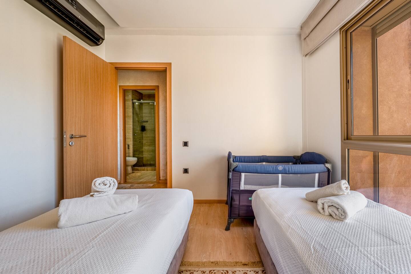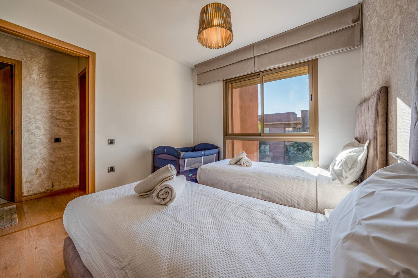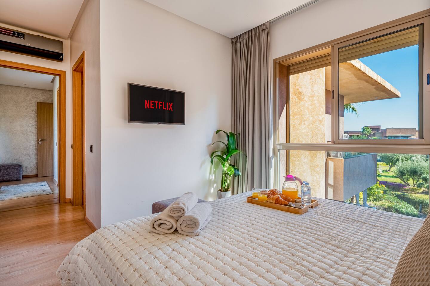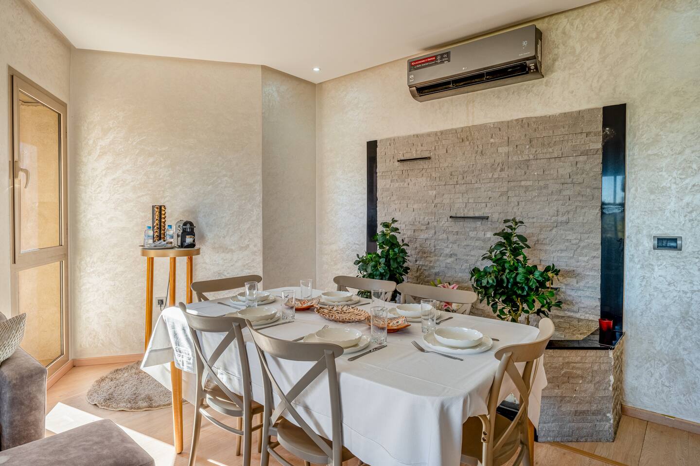 Vous bénéficierez de l'appartement dans sa totalité, entièrement équipé et aménagé pour que vous vous sentiez comme à la maison. Vous bénéficierez aussi d'un accès permanent à la piscine ainsi qu'aux espaces verts. - Conciergerie disponible 24/7, pour satisfaire tous vos besoins. - Transport aéroport-appartement (en option) - Ménage professionnel avant et pendant le séjour (en option) - Excursions et expériences (en option) - Recommandations locales et adresses utiles pour vous aider à collectionner des souvenirs inoubliables de Marrakech. - Self check-in : accéder au logement à tout moment grace au code d'entrée digital. -------------------------------------------------------------------------- You will benefit from the entire apartment, fully equipped and arranged to make you feel at home. You will also have permanent access to the pool and green spaces. - Concierge available 24/7, to satisfy all your needs. - Airport-apartment transport (optional) - Professional cleaning before and during the stay (optional) - Excursions and experiences (optional) - Local recommendations and useful addresses to help you collect unforgettable memories of Marrakech. - Self check-in: access the accommodation at any time thanks to the digital entry code.