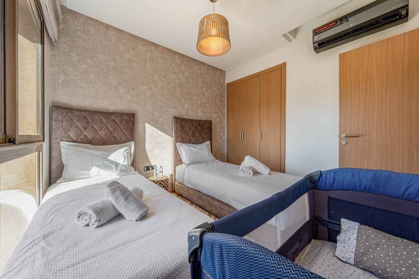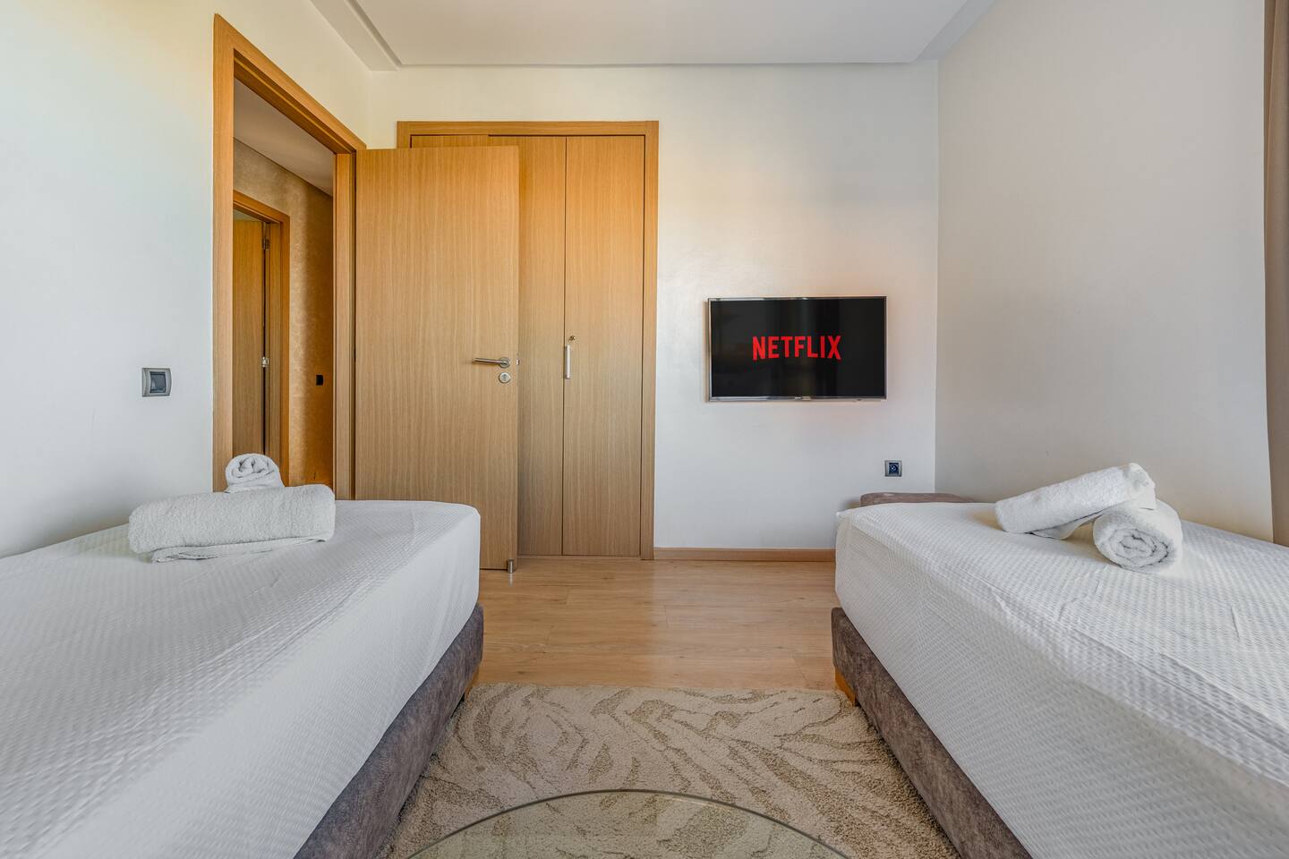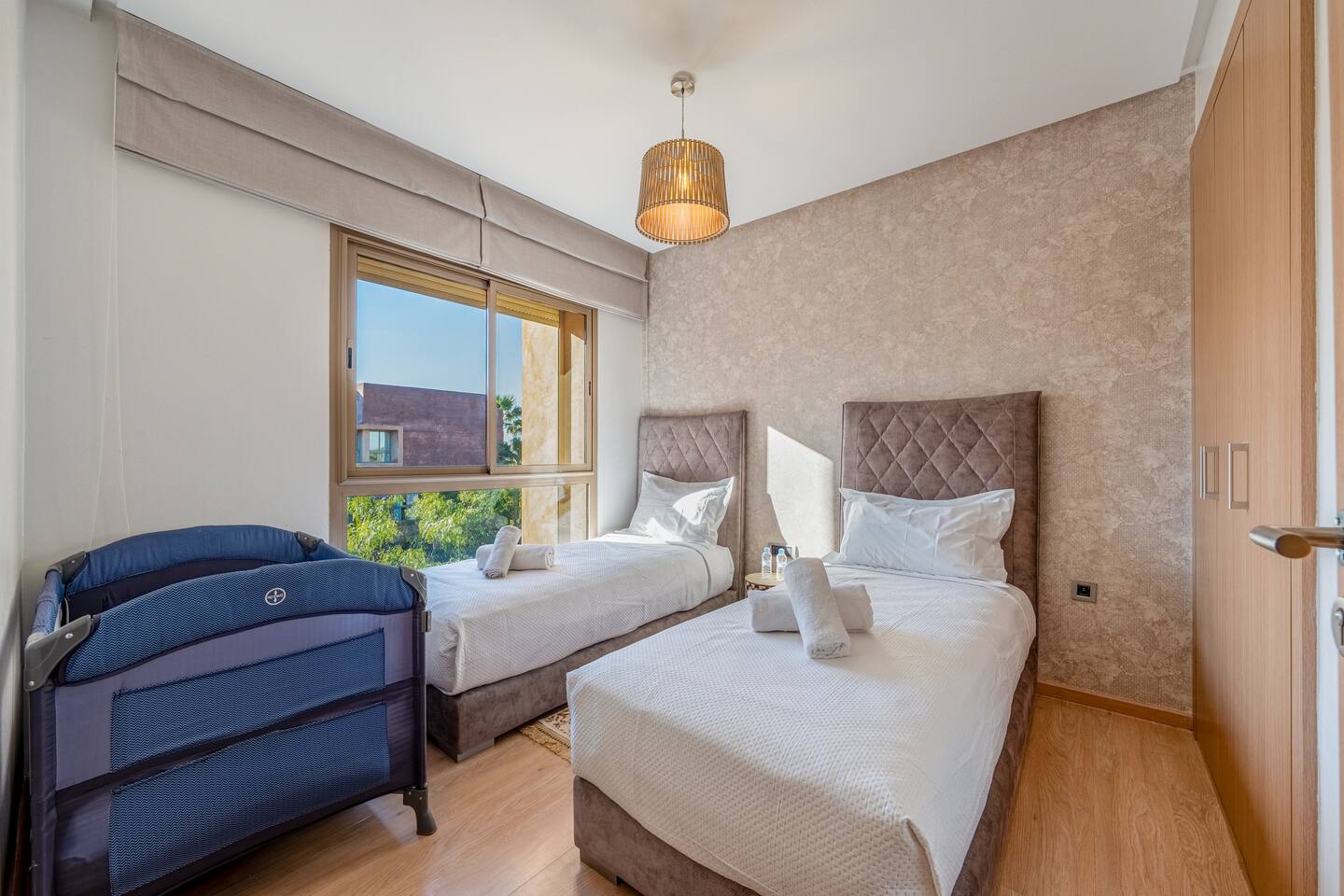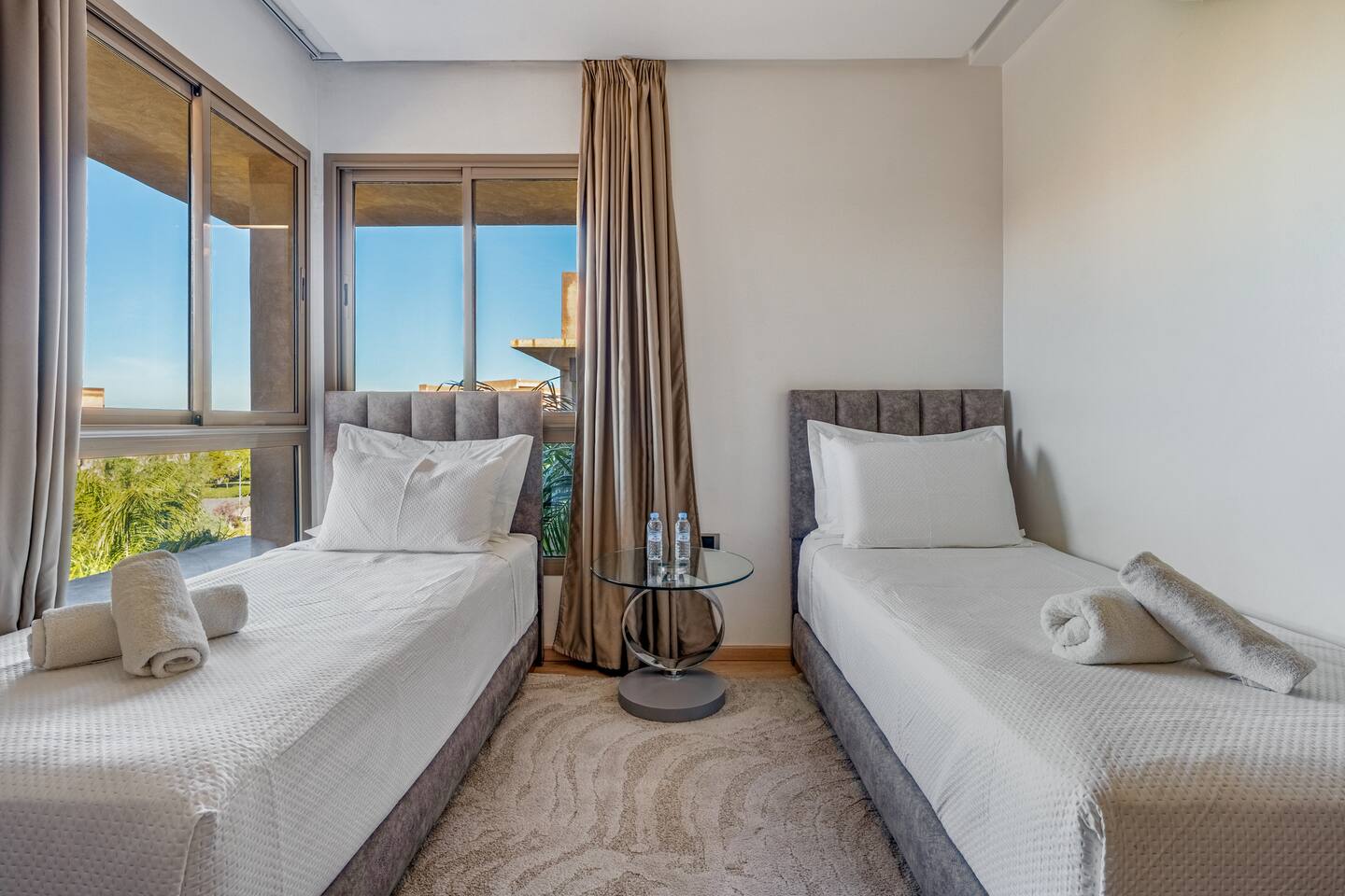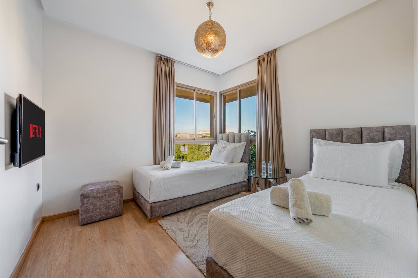 Vous bénéficierez de l'appartement dans sa totalité, entièrement équipé et aménagé pour que vous vous sentiez comme à la maison. Vous bénéficierez aussi d'un accès permanent à la piscine ainsi qu'aux espaces verts. - Conciergerie disponible 24/7, pour satisfaire tous vos besoins. - Transport aéroport-appartement (en option) - Ménage professionnel avant et pendant le séjour (en option) - Excursions et expériences (en option) - Recommandations locales et adresses utiles pour vous aider à collectionner des souvenirs inoubliables de Marrakech. - Self check-in : accéder au logement à tout moment grace au code d'entrée digital. -------------------------------------------------------------------------- You will benefit from the entire apartment, fully equipped and arranged to make you feel at home. You will also have permanent access to the pool and green spaces. - Concierge available 24/7, to satisfy all your needs. - Airport-apartment transport (optional) - Professional cleaning before and during the stay (optional) - Excursions and experiences (optional) - Local recommendations and useful addresses to help you collect unforgettable memories of Marrakech. - Self check-in: access the accommodation at any time thanks to the digital entry code.